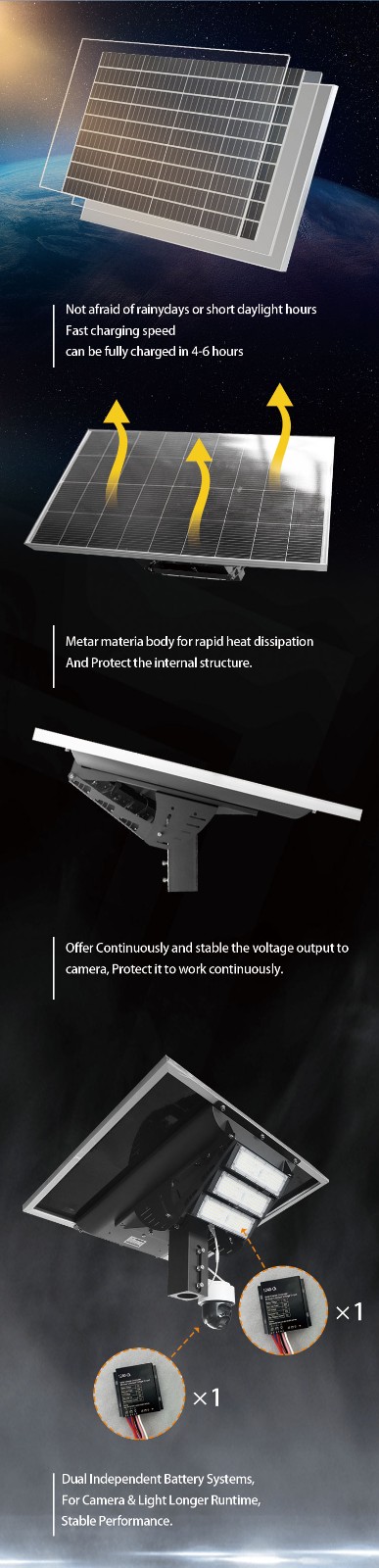High-performance solar panels ensure long-lasting endurance.